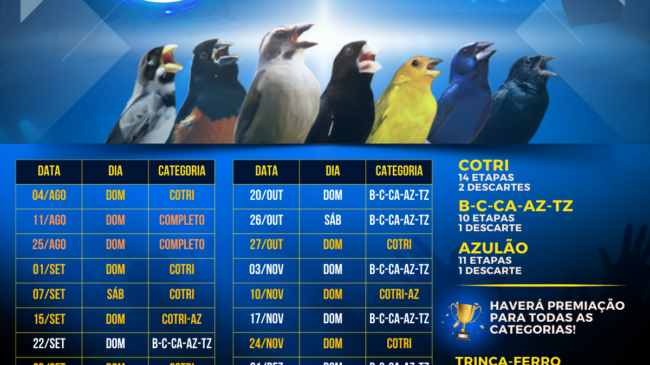 CLIQUE NA CATEGORIA ABAIXO: AZULÃO BICUDO CANÁRIO COLEIRO COLEIRO PARDO CURIÓ TIZIU TRINCA-FERRO